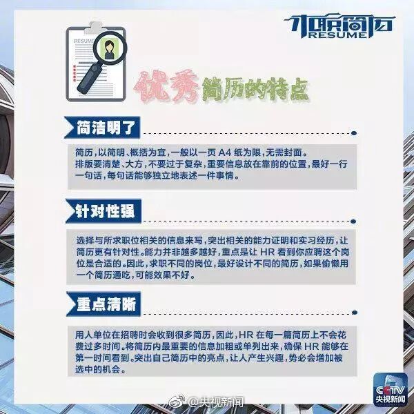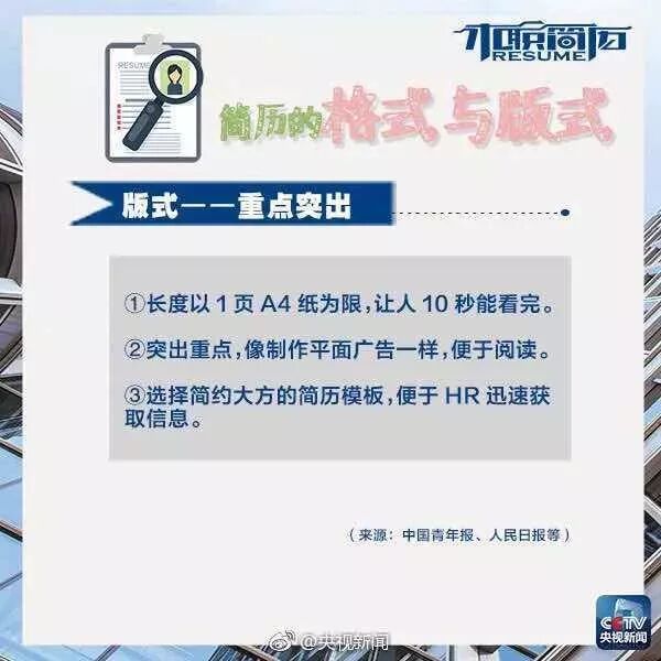 要保证你的简历会使招聘者在30秒之内,即可判断出你的价值,并且决定是否聘用你。